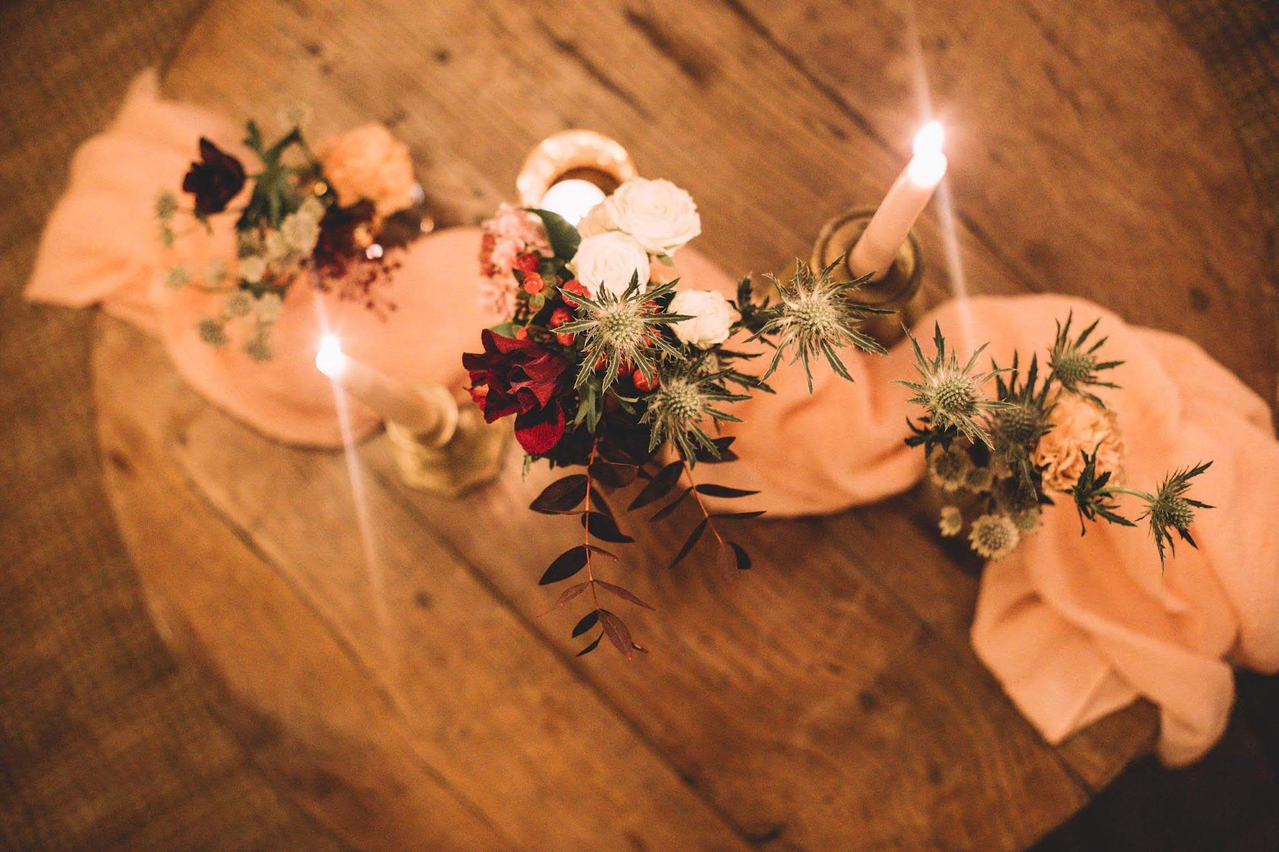 Diana et Alexandre ont confiés la décoration de leur mariage à l’agence Artis Evénement, wedding planner et designer qui a imaginée une cérémonie laïque devant la cheminée, avec une arche sauvage suspendue au dessus des mariés. Une ambiance cocooning offerte aux invités et qui s’est prolongée avec un cocktail dinatoire, quelques salons en rotin, une multitude de bougies et des compositions florales colorées pour sublimer les espaces.